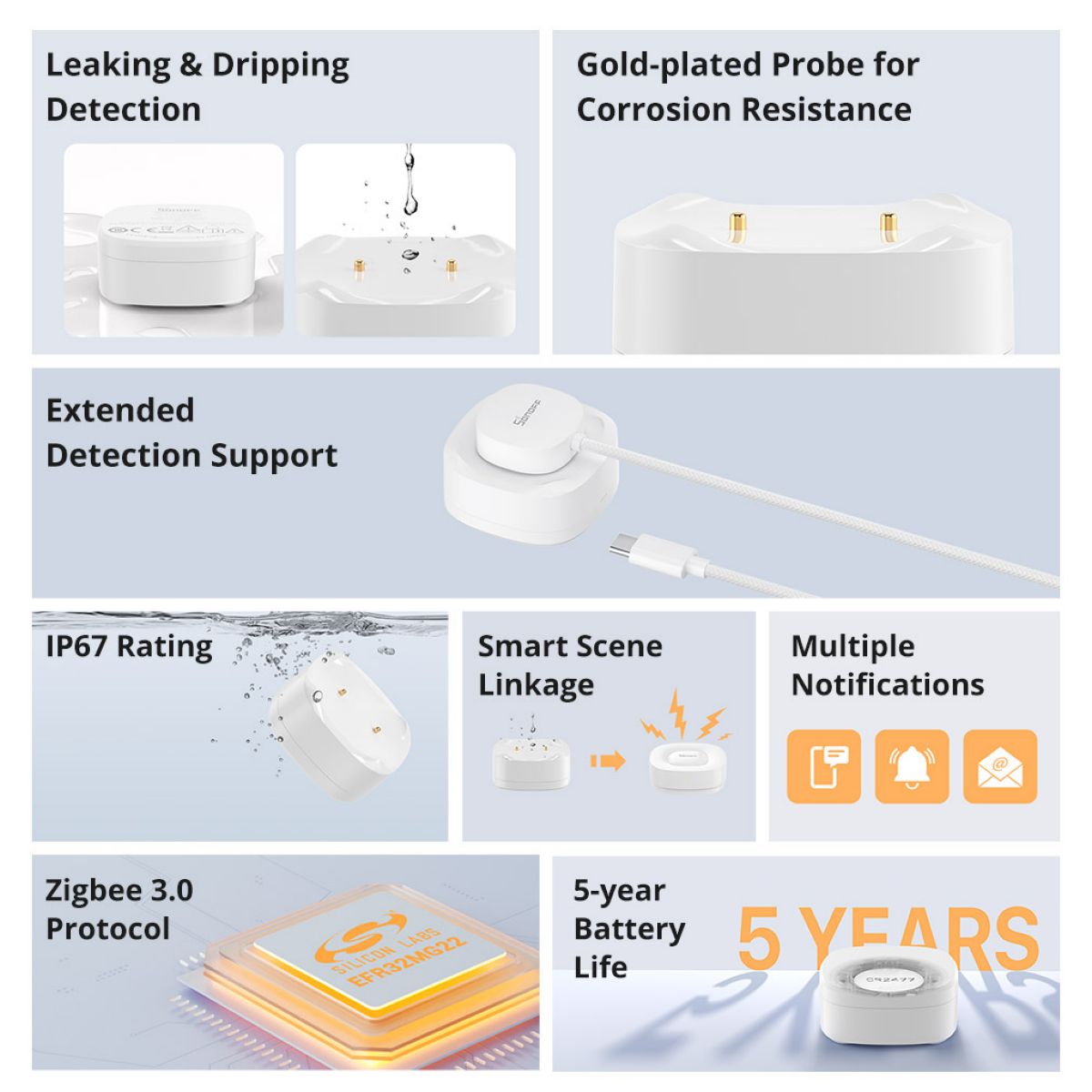 Protege tu hogar con el Sensor de Fugas de Agua Sonoff SNZB-05P Zigbee. Detecta instantáneamente derrames y fugas, enviando alertas a tu móvil a través de la app eWeLink. Su diseño impermeable IP67 garantiza durabilidad. Compatible con Amazon Alexa, Google Home y SmartThings (requiere Hub Zigbee), este sensor inteligente es esencial para prevenir daños por agua en cualquier estancia.